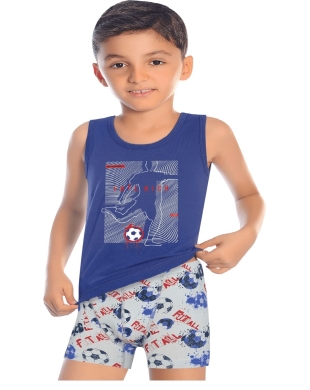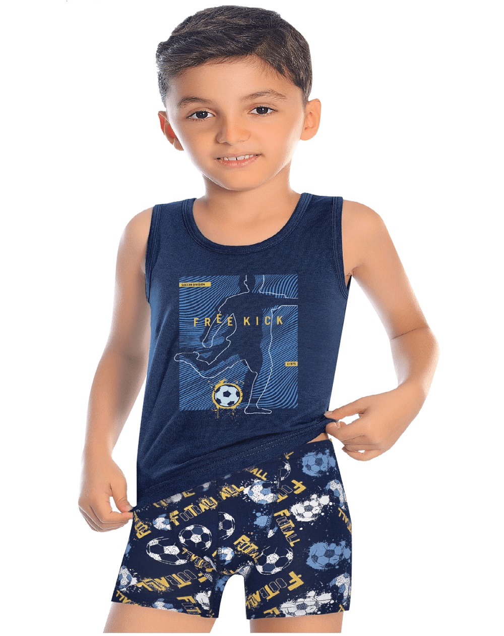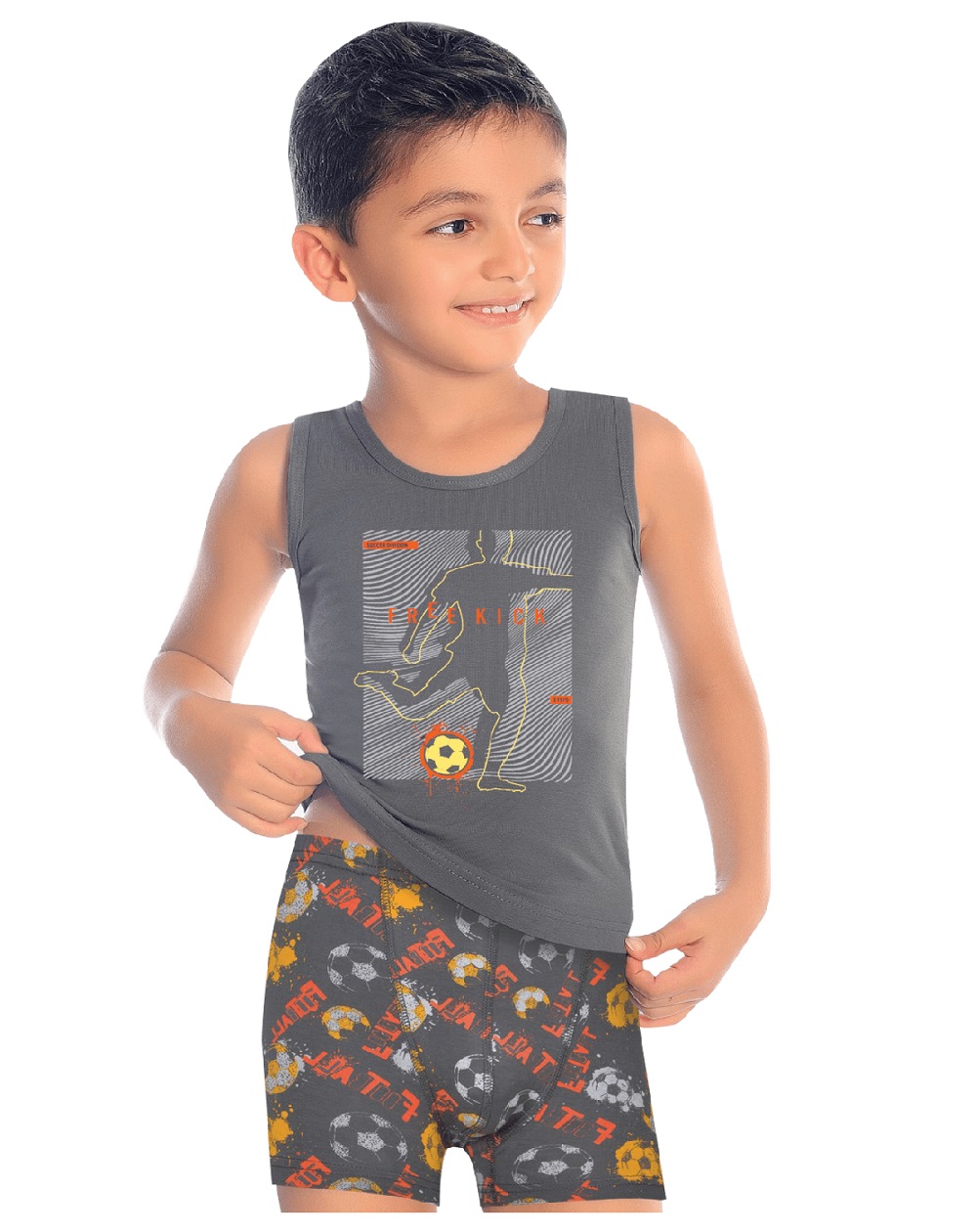 Комплект нижнего белья (Майка и боксеры) для мальчика марки OTS майка и шортики, из эластичного х/б трикотажа, с принтом Футболист.В индивидуальной упаковке. Маечка на Широких бретелях.